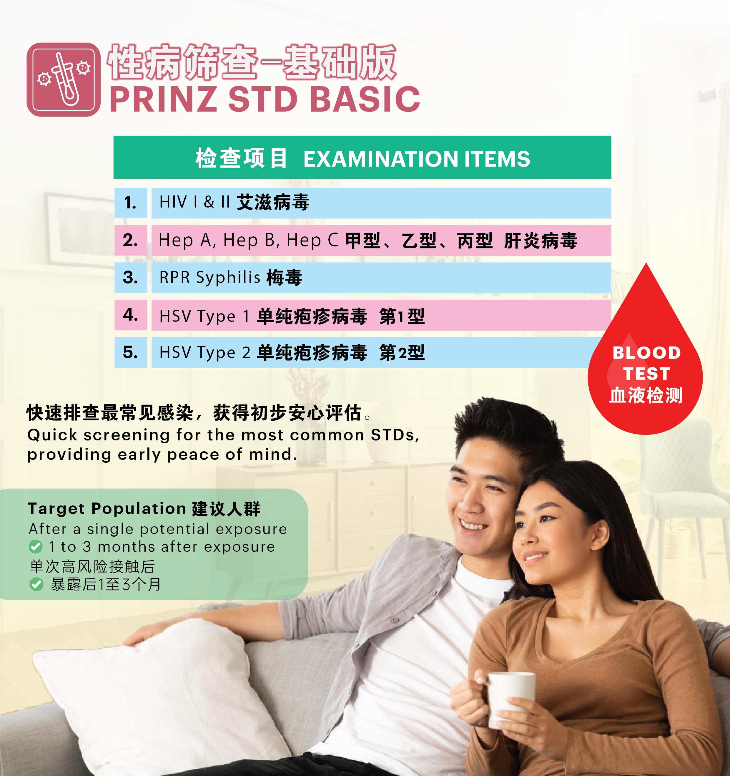 Non-Malaysian citizens are subject to 6% SST, to be verified and paid at the counter before screening. Prinz STD Basic Screening Prinz STD Basic Screening is a medically essential entry-level test designed to detect the most common sexually transmitted infections (STIs). This package focuses on ...Read more